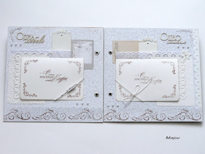 Из украшений - чипборд, кружева, вырубка, цветочки и любимые полужемчужинки, не представляю без них свадебных работ.